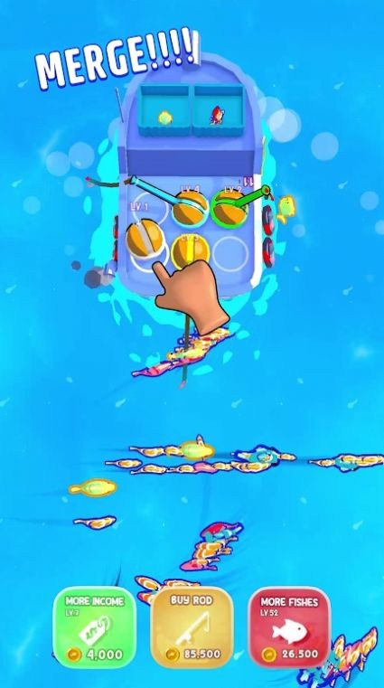 2.随着不断地通关,更多的鱼群将会解锁,尽情地发挥自己的合并能力,获得更加高级的渔船,完成你的鱼群图鉴。