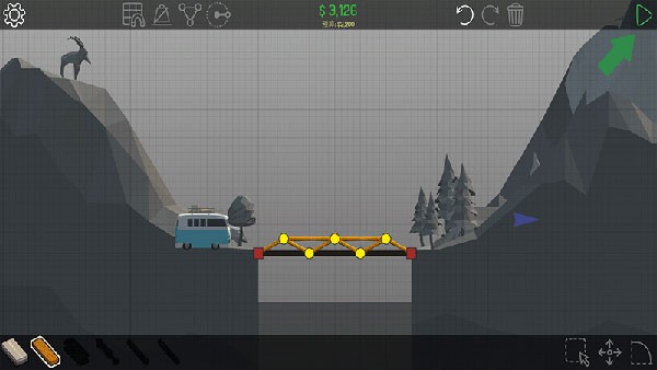 桥梁是否坚固耐用也是关卡是否能顺利通过的标准,当桥能顺利的通车并为另一边的人们打开通往外界大门时,玩家才算完美通关,你在挑战中要完成全方面的挑战,你要因地制宜的绘画出不同的图纸,需要你建设出适合当前地形的桥梁。