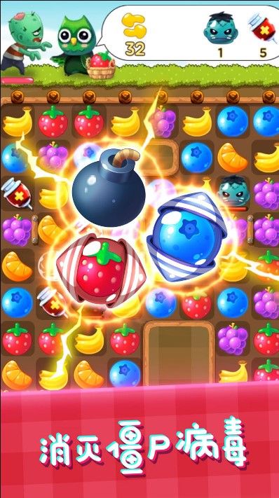 可恶的僵尸们企图袭击你的村庄,为了守护村庄的和平,你需要勇敢地迎战。战斗方式极其简单,就是轻松愉快的三消游戏。通过消除下方的方块来对敌人造成伤害,确保僵尸不会突破你的防线。仅需用一个手指即可操作,滑动屏幕就能调换水果位置。这里有十分可爱且充满童趣的画面,提供给你最放松的游戏体验。这种有趣的玩法特别适合在心情不好时玩耍。