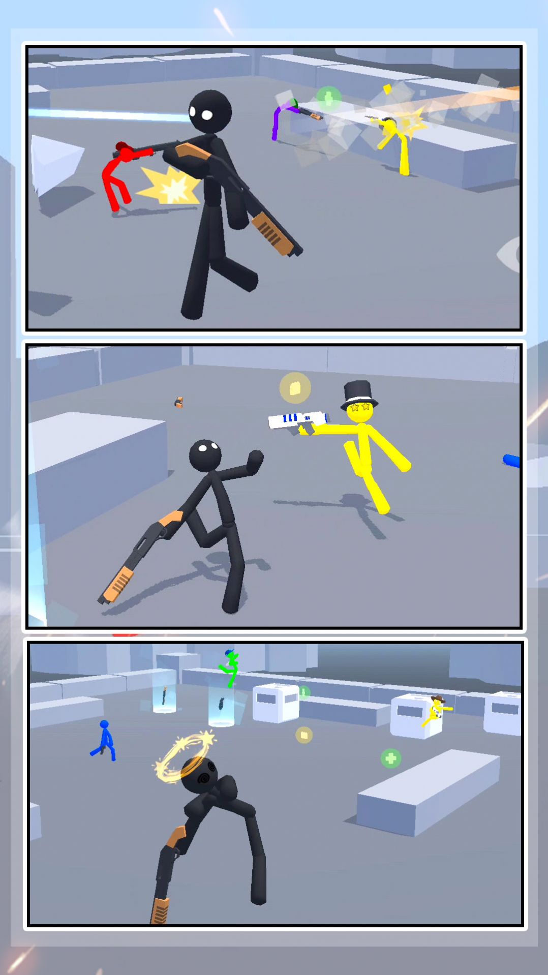 2、非常有趣的过关动作游戏,以火柴人的形象为主角,拥有众多精美可爱的场景和千奇百怪的武器,让玩家尽情享受火柴人的刺激与趣味。