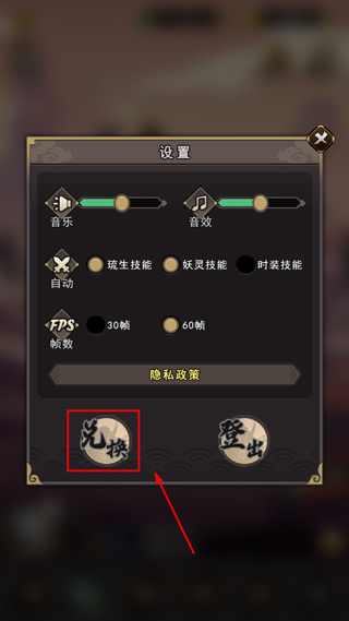 2、点击兑换码;