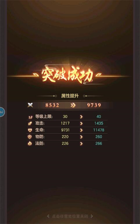 4、接下来就可以一直点击一键升5级了,直到突破按钮出现,我们点击突破