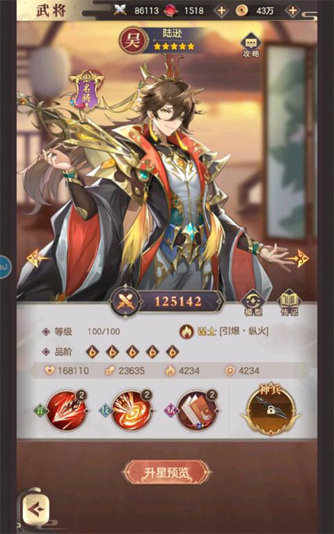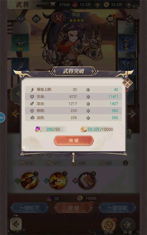 6、这样升级后就可以有效地提升武将的生命、物防或者攻击力等属性了