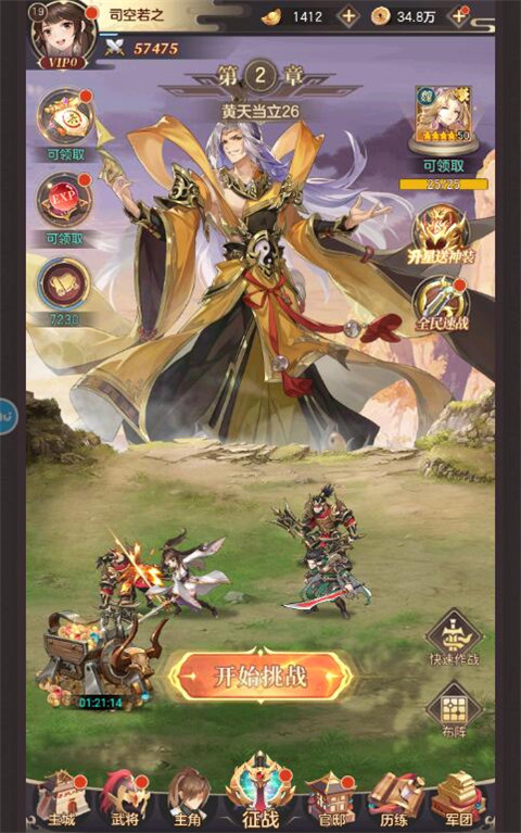 1. 返回到《幻想名将录》的主界面,点击左下方的“武将”按钮。