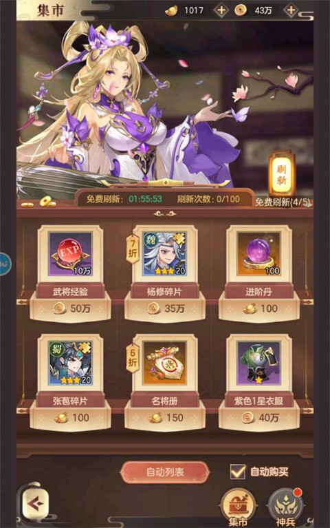 集市也会有进阶丹出售,使用100元宝可以购买100枚进阶丹,如果没有看到进阶丹的话可以直接刷新