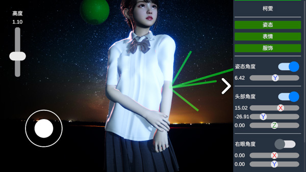3、选择完毕后,点击镜头,调整模特的角度;