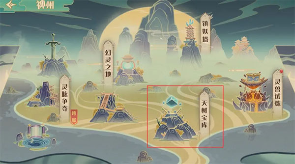 符石功能开启后,主界面上方的神州副本界面,也会同步开启天材宝库副本入口。
