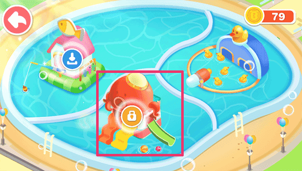 在这里找到并点击紫色方框内的场景-水上滑滑梯;