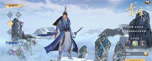 1、剑客青峰:一剑九天降寒霜,十里冰雪无人迹。特点:使用剑进行近身攻击,战斗风格大开大合,万里冰霜,身法如寒冬飘雪。轻盈无踪