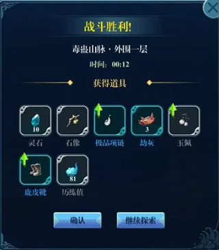 战斗可以获得历练值,历练值可以提升角色等级,当等级达到一定要求的时候,就能在福地左边渡劫了。