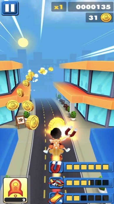 1、在地铁轨道上奔跑,躲避障碍物,收集金币和道具;