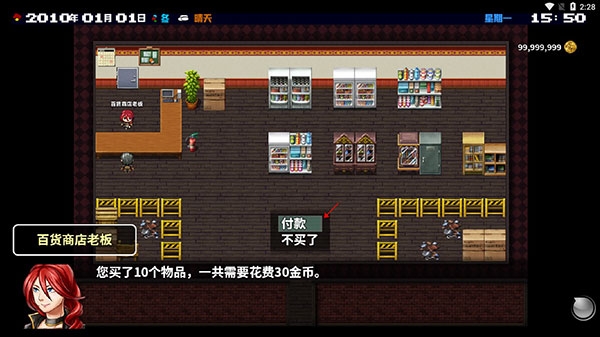 我们来到超市里,点击屏幕来到百货商店老板后会弹出选项。