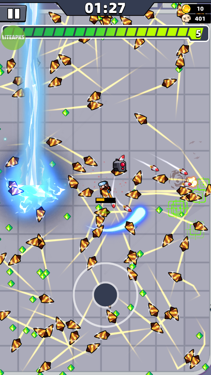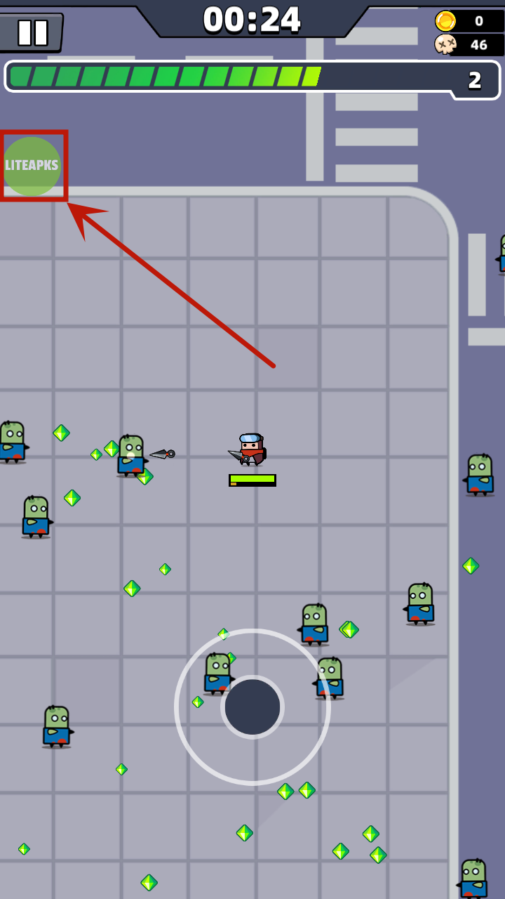返回重新打开游戏,点击进入游戏内后,我们可以在游戏左上角看到写着【LITEAPKS】的圆形标志,这就是我们的菜单功能区。不得不提一嘴,游戏内的僵尸刷新真的很多很快。
