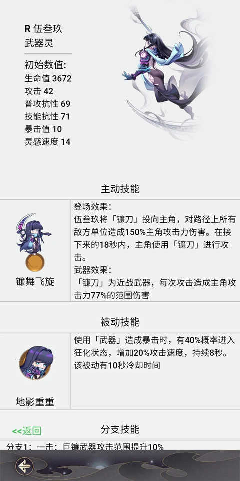 伍阶:(主动技能强化)法术场附带40%的减速效果;(星灵属性强化)攻击力+15%,暴击值+15%