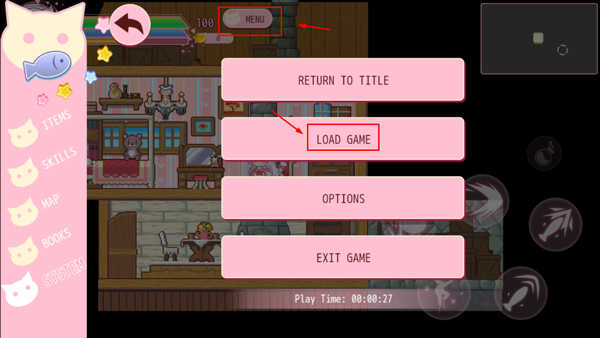 进入游戏,点击顶部的 MENU,随后点击左侧的 SYSTEM,选择 LOAD GAME。