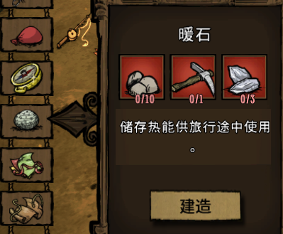 保暖石头是饥荒新家冬天必备的一个工具,其本身制作就很简单,但是保暖的作用却十分大,而且使用很简单,只需要将其放在火堆旁边加热直红温状态,再放在身上储存就可以了。不过这个有保温时间限制,所以建议玩家多做几个循环使用。