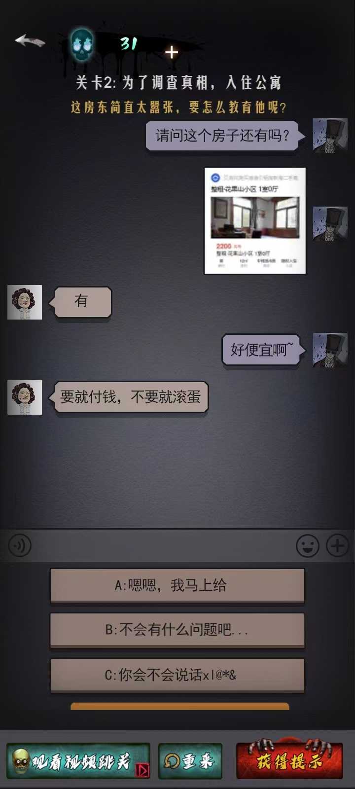 接下来点击【开始游戏】,就会进入关卡1,上方会出现本关卡的任务,比如这个关卡的任务是在报上找到有关“恐怖公寓”的新闻,然后点击那条新闻即可;