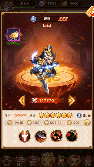 武将选择篇。由于资源有限的原因,大家都是优先培养一个武将,测试服第一个限时武将是曹操,所以大佬们都是极限培养曹操的。限时尽量多抽本体,要不上不去11星以上了。高级令、拜将令要囤到活动时一起抽拿奖励。武将要选好在升星不要乱升星,紫色留着合五星,不要随便分解,不是本阵营需要的在分解拿石头。零氪党可以极限下关羽