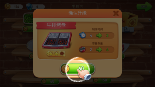 获得一定金币后可以升级厨房,提高厨房用品的制作时间以及容量