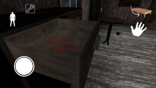 游戏刚开始玩家是在房子的第二层房子里面睡觉,然后醒来以后会发现房门紧闭。玩家自己是不能打开房门的,因此就需要老奶奶的帮助。游戏中起床以后会看到一个桌子,只要将桌子上的花瓶拿起来念动咒语,让后踢到桌子老奶奶就会迅速赶来,在此之前我们要躲在床底下或者柜子里面,以免被恐怖奶奶发现。