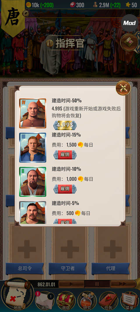 点击指挥官,玩家可雇佣人才、如建筑师、指挥官等;