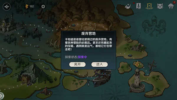 探索关卡:点开后会显示探索状态,探索后的关卡内并不会有物资或敌人刷新(当然,钓鱼是可以的),若显示未探索或是探索中,各位大可以进去看看,里面说不定藏的就是你心心念念的财宝。