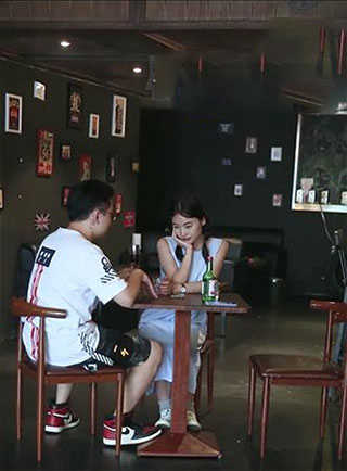 等男主去洗手间后,将男子拖动到椅子上