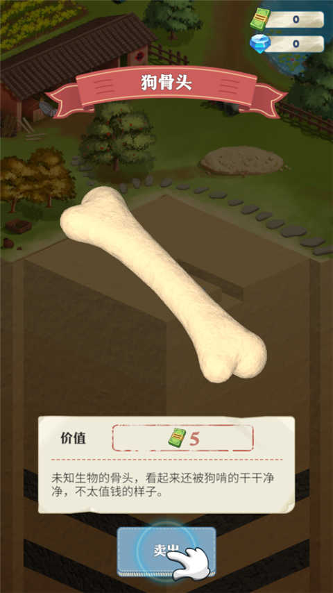 之后开启挖掘地下,挖到了狗骨头,点击卖出;