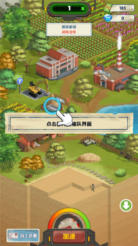 挖出来的土可以卖给建材公司,但是由于太远了,需要运输工具,所以点击运输队界面;