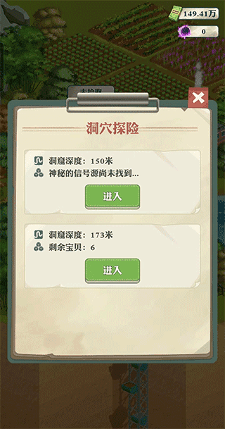 神秘洞穴内有神秘物质以及各种宝藏收藏,首次进入还可以获得秘宝,秘宝可产生更多的神秘物质,神秘物质可提升各种获取金钱的buff!成为“首富”指日可待!各种宝藏收藏也可以拿到手软,谁能不喜欢探索一下神秘洞穴呢?