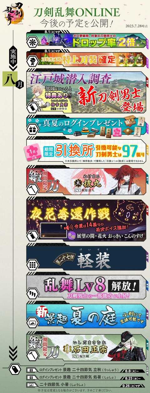 Touken Danshi拥有八种剑:短刀、胁差、打刀、太刀、大太刀、薙刀、枪和刀。