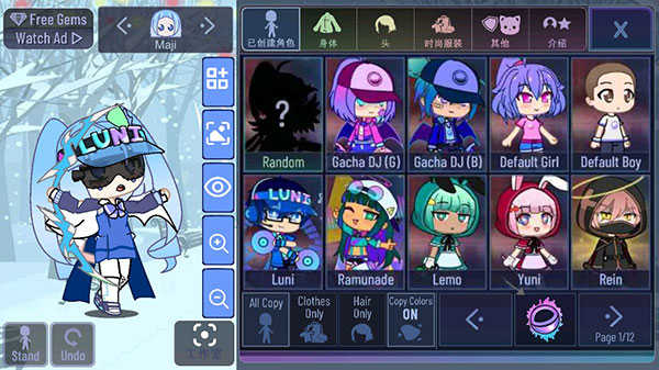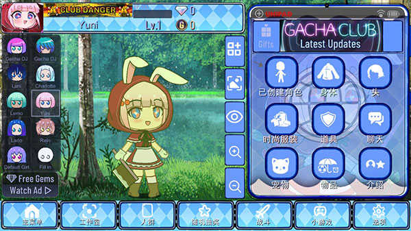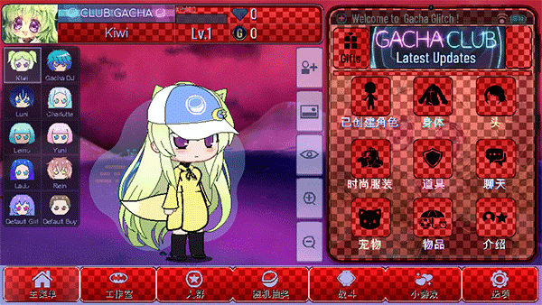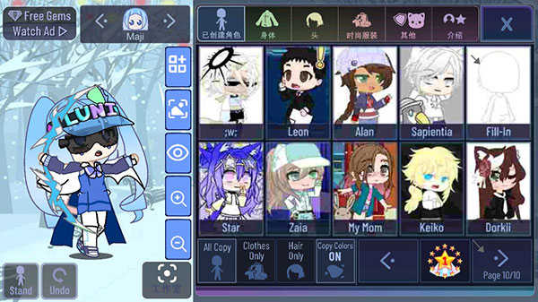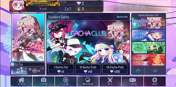 【随机抽奖】页面包含很多可爱的加查角色,需要钻石来抽奖获取。