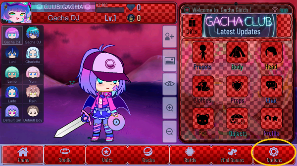 点击“TAP SCREEN”进入游戏,主菜单可以自定义角色,选择头像、身体、服装、配饰、宠物等,完善自己的人物。