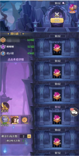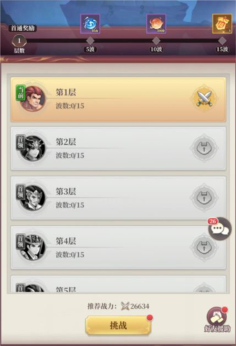 能获得武将经验、混沌精华、高级诏令等资源,如果达到相应层数,可获得首通奖励,如观星灵珠、刻印符等。