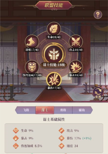 ◆ 四个职业有对应的技能加成,技能满级为40级。每个轮次的技能全部激活后才能开启下一等级。大大们可根据自己的阵容组合特点升级,建议优先点上自己的主力输出手