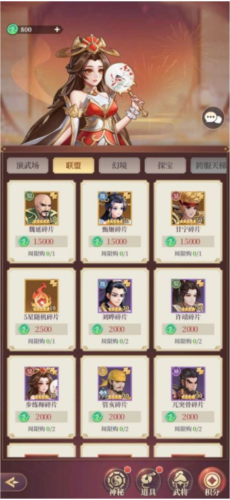 此外,联盟商店还有几位四星武将,如果升星过程中需要特定的狗粮,可以在里面兑换哦。