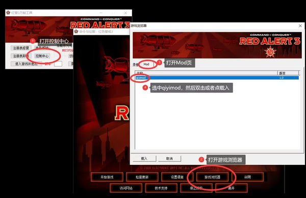 第三步:打开控制中心,然后在控制中心打开游戏浏览器,切到Mod页,双击qiyimod进入游戏。