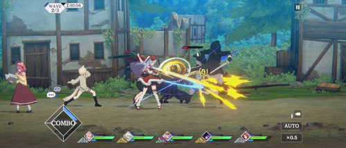 战斗系统相当简单,开始后会以半自动的形式展开(新手教学结束后可直接全自动+两倍速),随着与敌人一来一往的自动攻击,可使用画面左下随机选出3人、根据先后顺序附加越来越多Buff的 Strike Combo 技,或是各角色的必杀技。 另外,通关后可以开启扫荡机制,加快等级提升的速度。