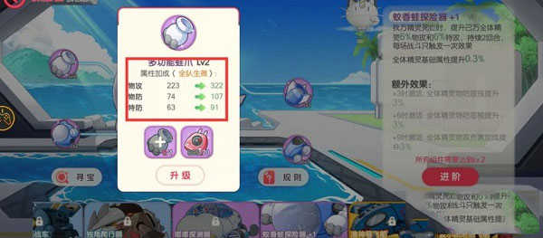 上阵6个同属性的精灵:生命+15%,物攻+10%,特攻+10%