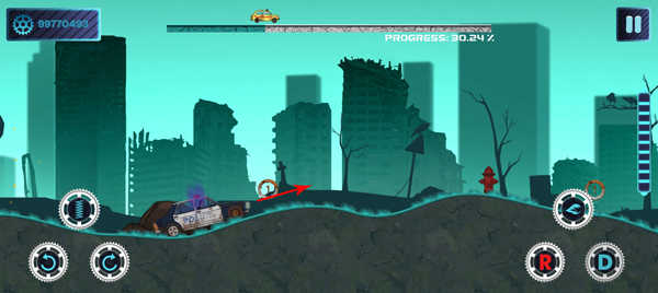 前进途中还会有很多金币和汽油,当汽车燃油不足是就可以通过收集汽油来增加