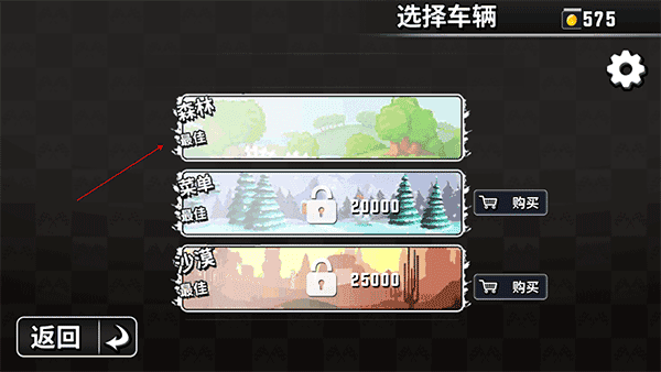 进入登山赛车越野赛游戏后,首先选择一个地图进行挑战