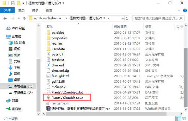 找到解压得到的文件夹,使用鼠标左键双击打开文件夹中的“PlantsVsZombies.exe”文件即可打开游戏,无需安装。