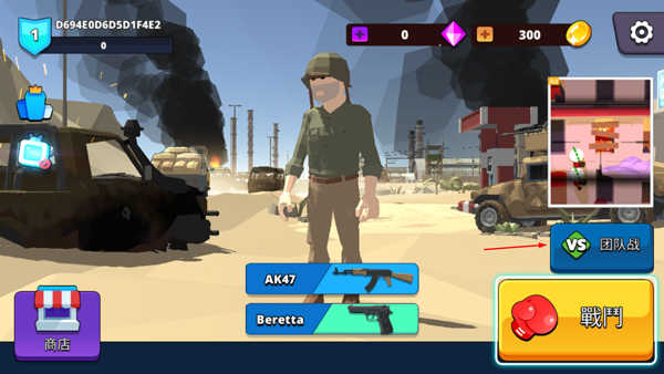 玩家可更换游戏模式,现有团队战、生存战、自定义匹配三种;