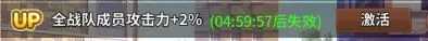 消耗公会增幅令或钻石可激活或提升战队全员增加攻击Buff效果,最大可增加到20%的攻击力加成,每个Boss击杀奖励每个角色只可获得1次,更换战队重复击杀只获得保底奖励;