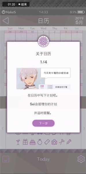 第1步:《早安我的少年》主打功能是提醒APP,游戏中设置了一个名为“Sei”的智能助手,能提醒你的日常生活、学习、工作相关事宜;