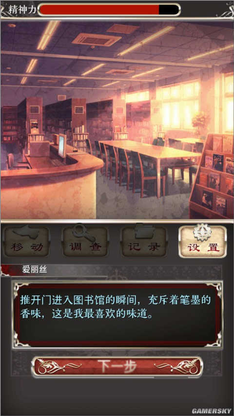 对所有可调查的地方进行调查,先检查书包,接着取走爱丽丝的学习工具,走向讲台拿走门上的纸,在调查模式下选择【思考】,随后进入剧情。