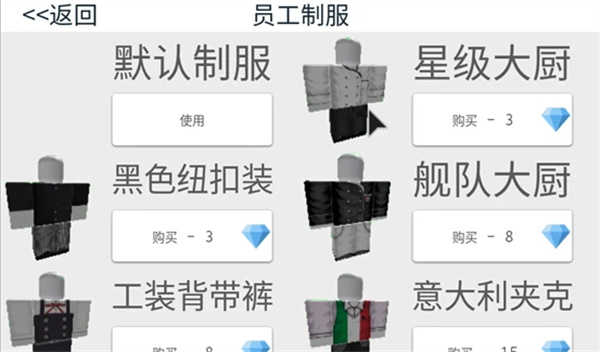 当玩家小费收取多的时候可以给员工购买员工制服,员工制服全部需要钻石购买(钻石来源于客人给的小费),穿上制服后服务态度也能提升,获得小费的几率会增加。