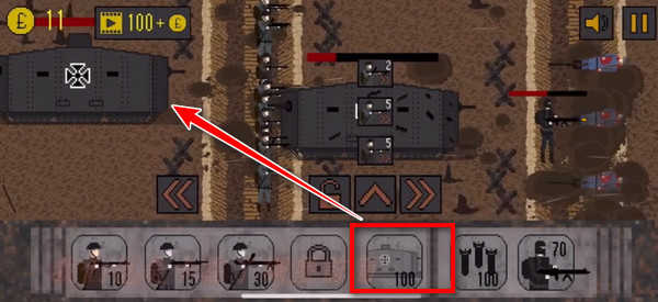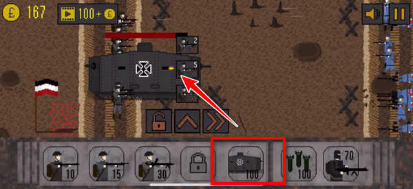 点击屏幕下方的坦克图标,出动德军坦克!