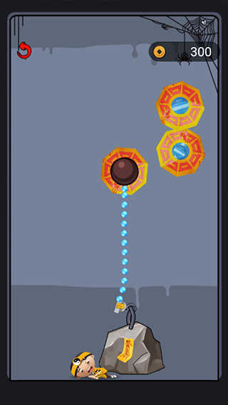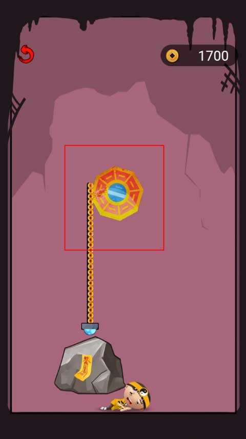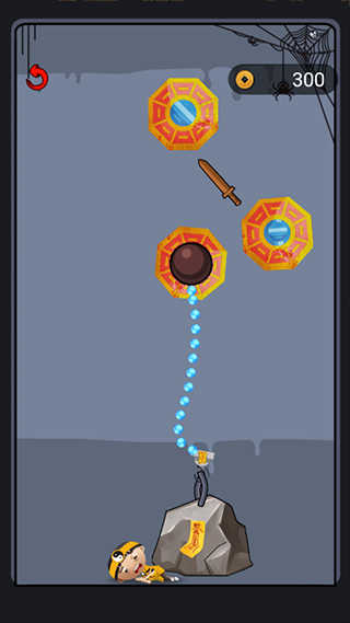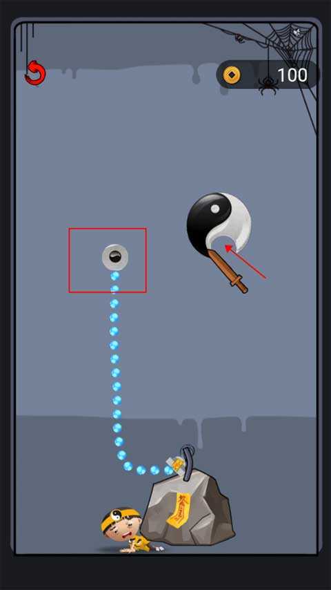 这关是需要拉动抓钩将下方的开关按钮抓住即可解救小道士。