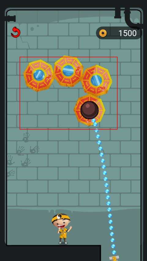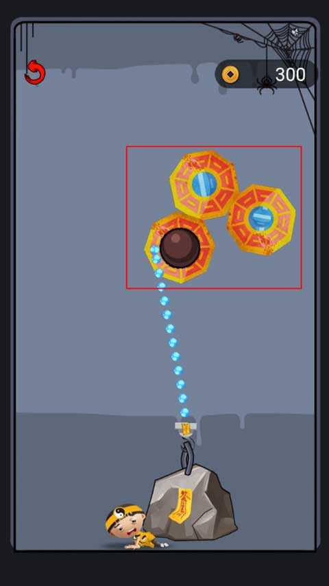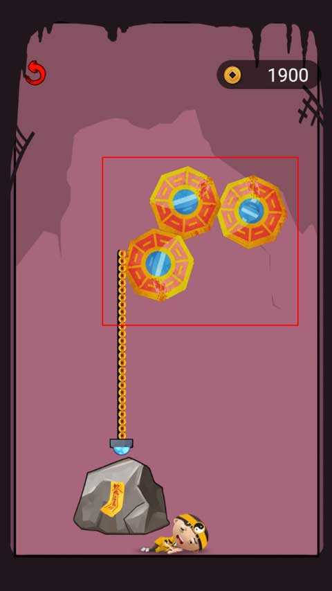 这关非常简单,同样是将干支表牛骨靠近铜币,它就会吸附并带动石头解救小道士。